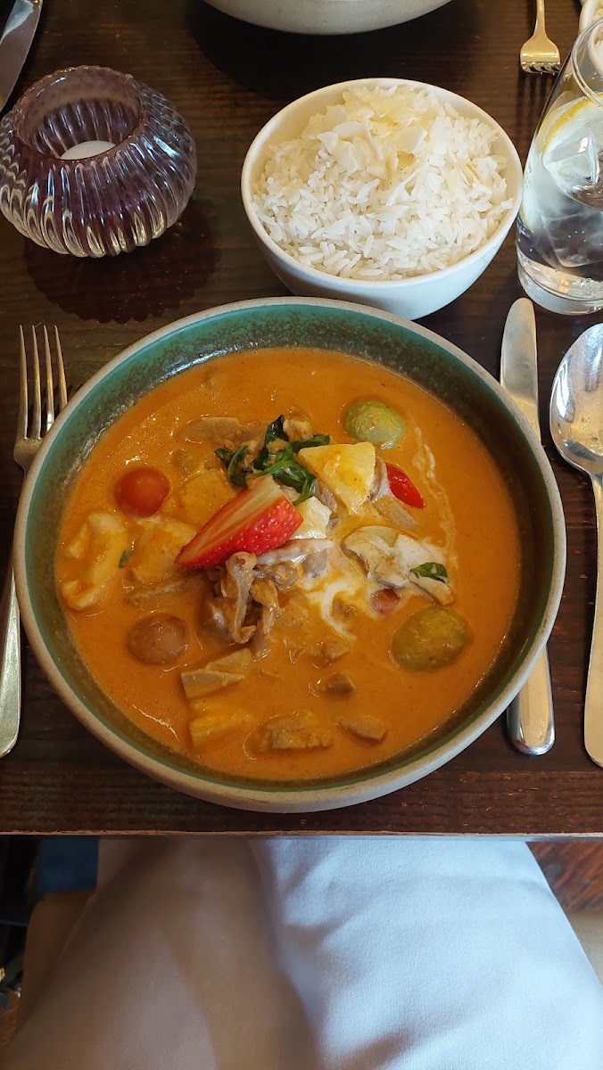 The menu is extensive, covering classic curries, stir-fries, noodles, and signature dishes inspired by Bangkok’s royal cuisine. I opted for a green curry with jasmine rice, while my friend chose the slow-cooked beef massaman. Both dishes arrived beautifully presented. The green curry carried a fragrant heat that built gradually rather than overwhelming the palate. The massaman, meanwhile, was deep and comforting, with tender beef and creamy coconut sauce. It’s clear the kitchen respects traditional methods-slow simmering, layering spices carefully, and using fresh herbs rather than shortcuts.