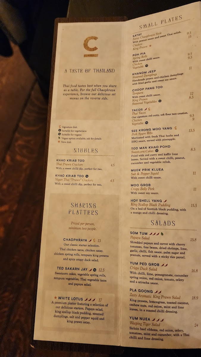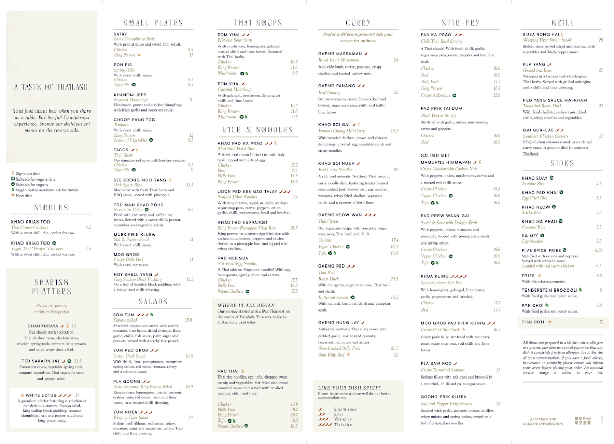 Located in the heart of Glasgow, Chaophraya offers a vibrant, inviting atmosphere perfect for enjoying authentic Thai cuisine. Their menu showcases a variety of mouth-watering dishes, each crafted with fresh ingredients and traditional Thai flavors. From fragrant curries to perfectly grilled meats, every bite is a journey through Thailand’s rich culinary landscape. The diverse options cater to every palate, with choices for both meat lovers and vegetarians alike. Whether you're in the mood for a quick lunch or a leisurely dinner, the Chaophraya menu promises to deliver a satisfying and memorable experience that will keep you coming back for more.